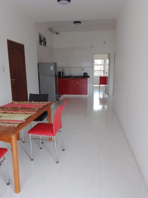 Kitchenette, Refrigerator, Microwave, Electric kettle, Kitchenware, Dining table