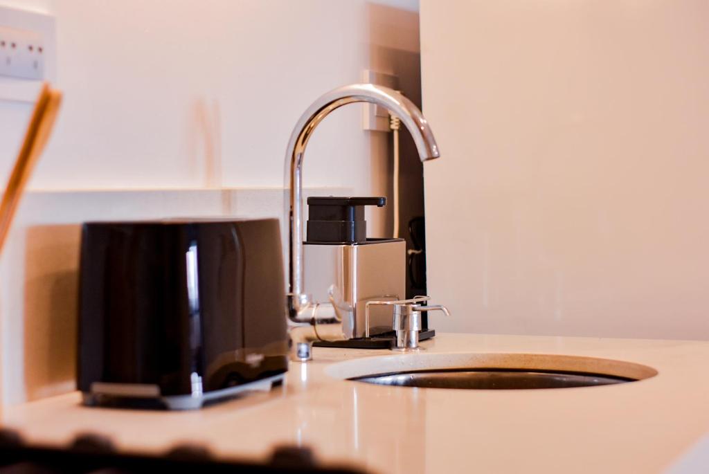 Kitchenette, Kitchen, Electric kettle, Kitchenware, Oven, Cleaning products, Dining table, Wine glasses