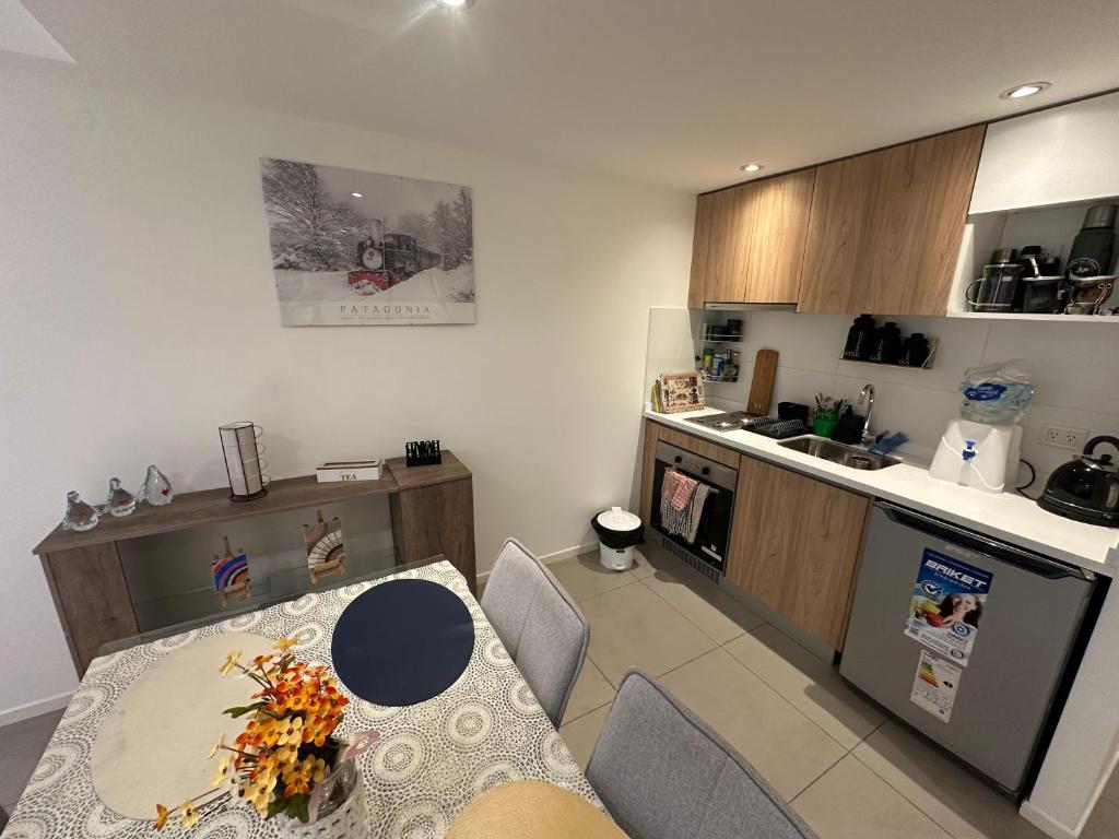 The distance from the center of Ushuaia to the apartment is around 350 m.