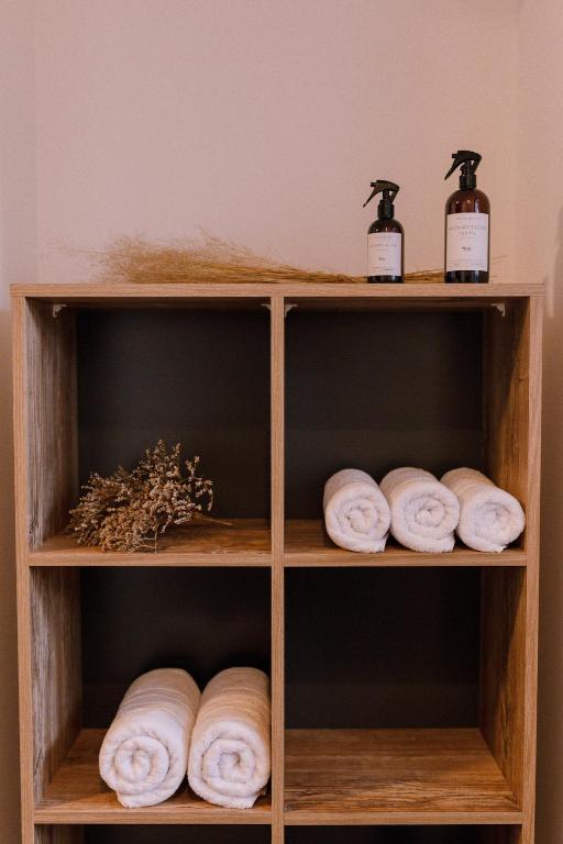 Shower, Hairdryer, Bidet, Towels, Toilet paper, Shampoo, Conditioner, Body soap